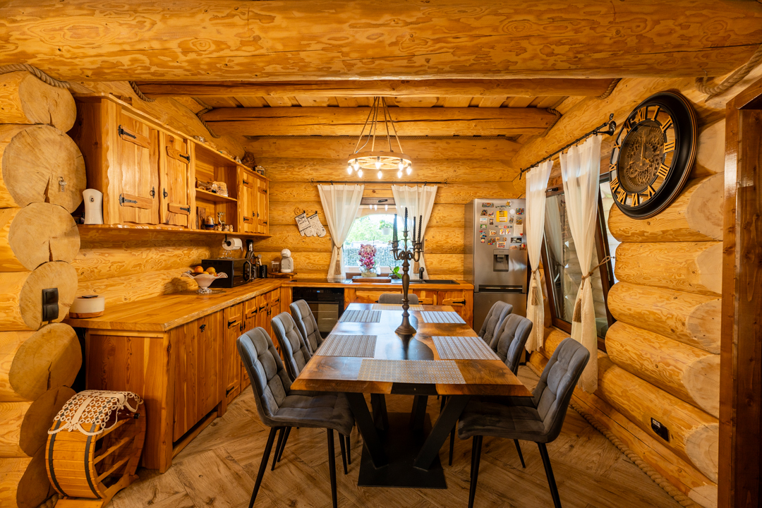 Wooden Chalet este cabana ideală pentru grupuri, cu un design rustic din lemn și un ambient cald și primitor. Spațiul generos, șemineul și detaliile cozy creează atmosfera perfectă pentru relaxare și socializare.